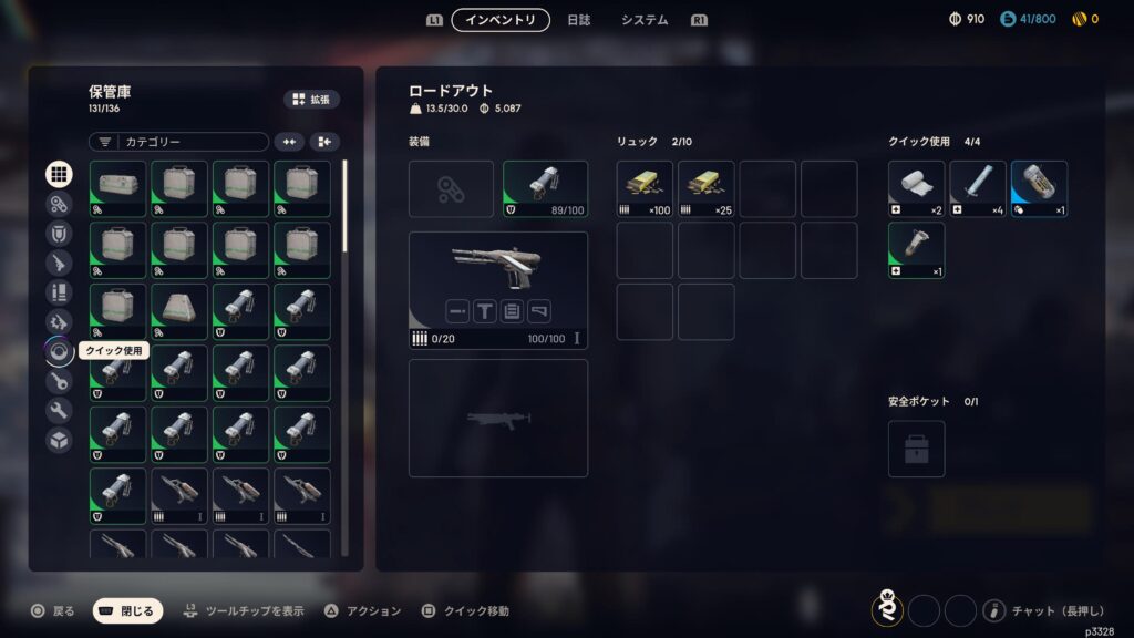 探索で戦利品を集めても、脱出に失敗すればすべて失うというシビアさはありますが、装備を整えていくと安全ポケットが活用できます。