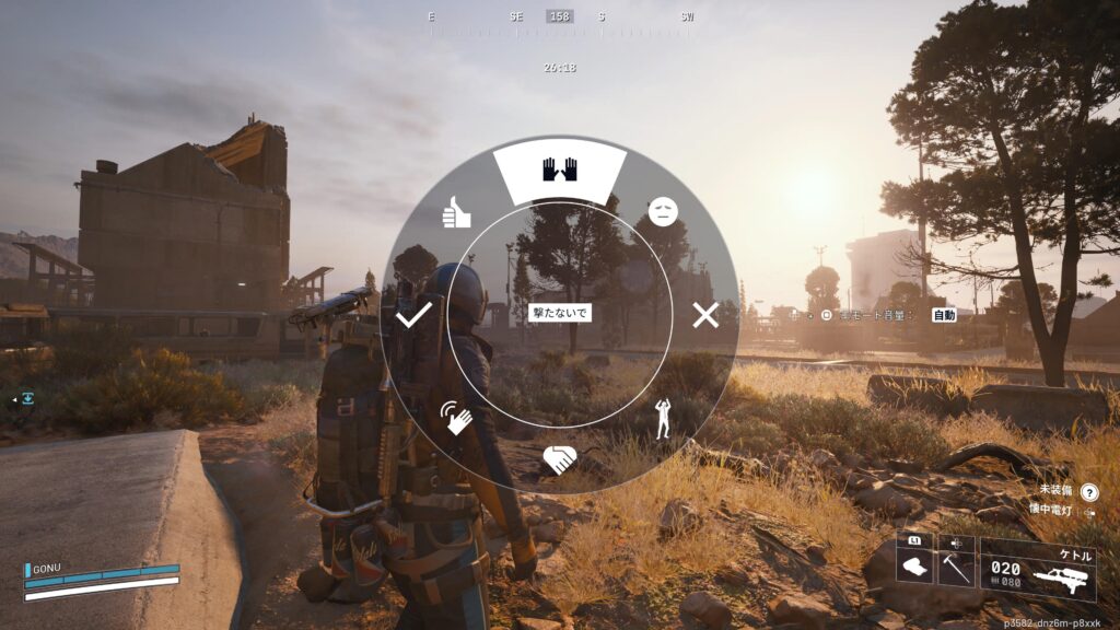 ゲーム内のボイスチャットを使わずとも、他プレイヤーに「ドンシュー」(Don’t shoot=発砲しないで)と伝えることができます。