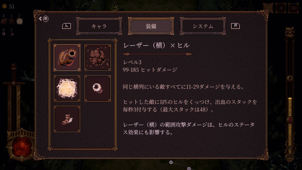 この幅広さによって、どう組み合わせたらより強くなれるかを考えながらプレイすることになり、それがクセになり、ついつい次のプレイと手を進めてしまいました。