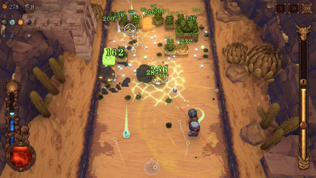 本作は簡単にまとめると「ブロック崩し」と「ローグライト」、「街ビルド」の要素が含まれたゲームです。