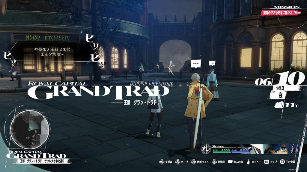 例えば、クエストをこなしたり街の人と重要な会話をしたりすると時間が進み、昼と夜の時間が終わるとカレンダーが1日進みます。