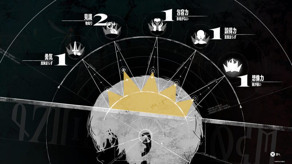 アーキタイプがバトルのための育成だったのに対して、主人公の素養に関わる育成要素とは主人公の行動の幅が広がる要素になっています。