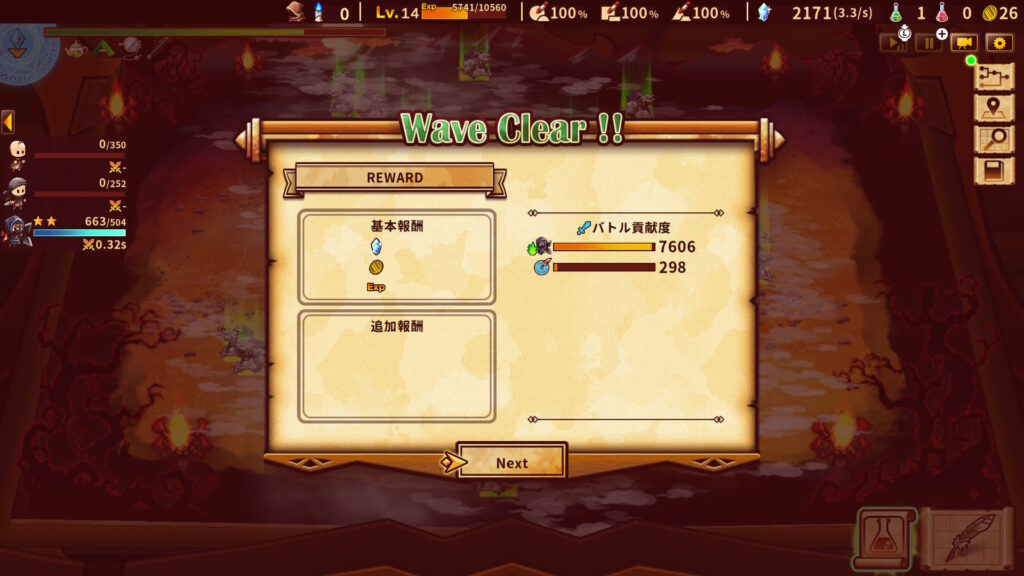 生産したヒーローが戦うタワーディフェンス要素については自動で戦闘が進みますので、プレイヤーはいかに効率よくヒーローを生産できるかに注力することができます。