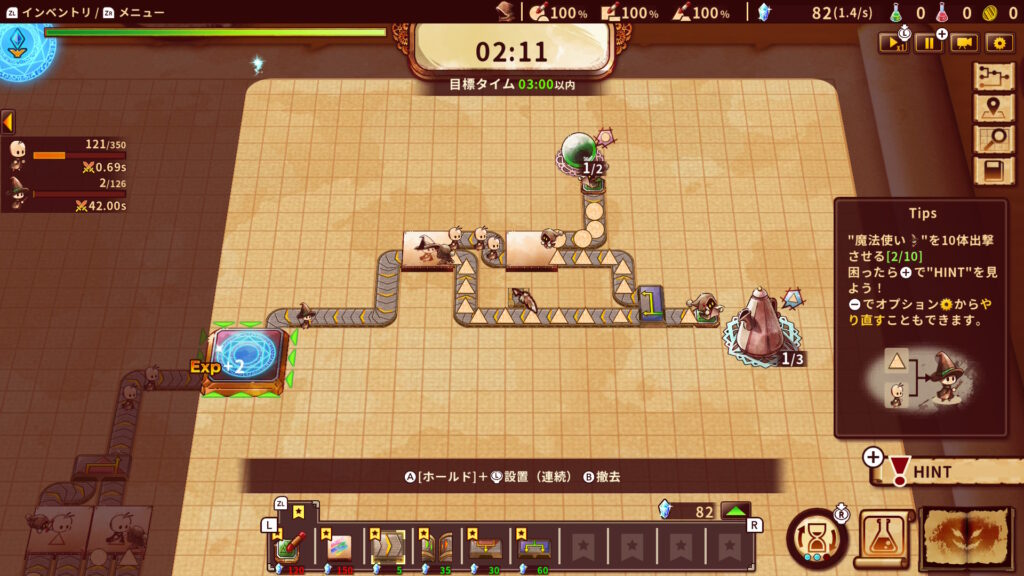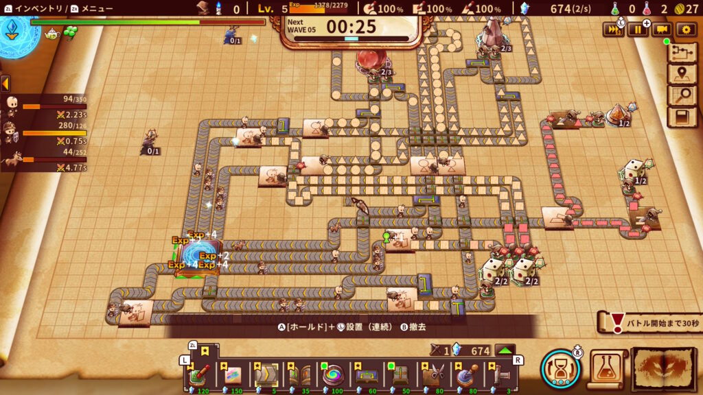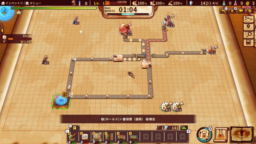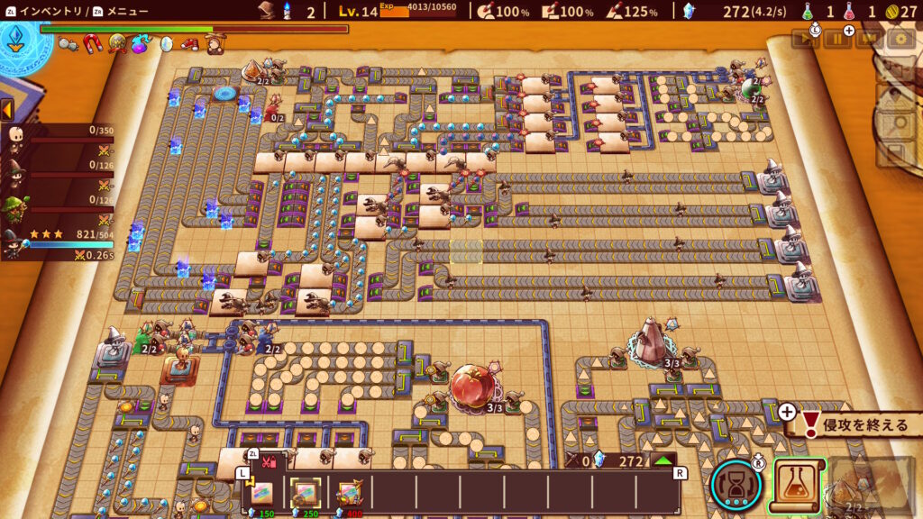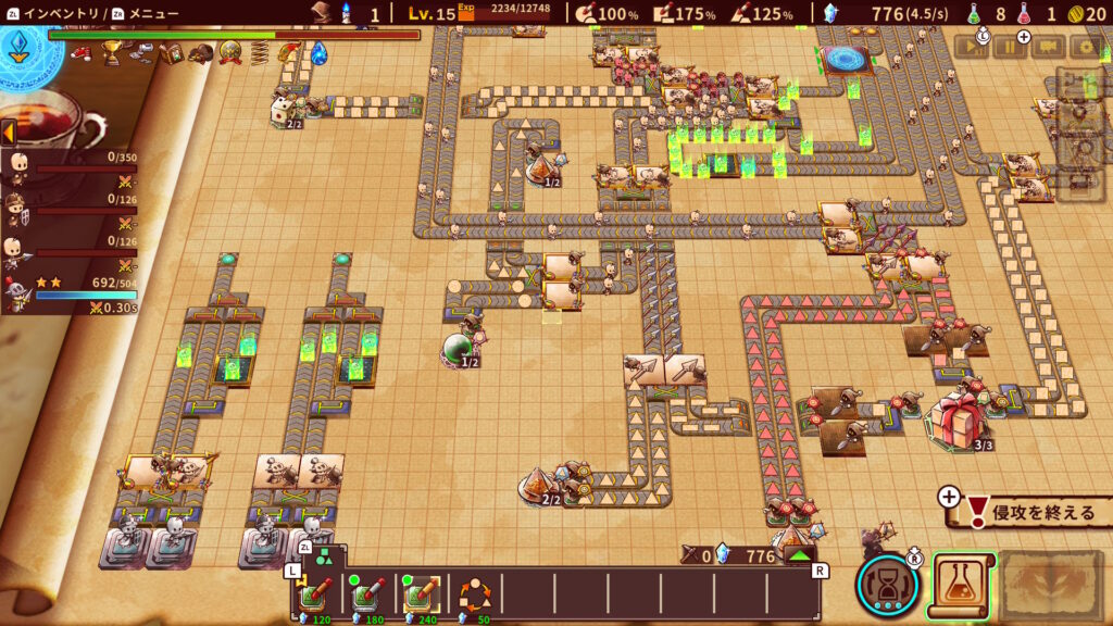 プレイを重ねるごとにプレイヤーの腕だけではなく、システム面でもより効率よく設備を配置できるようになっていきます。