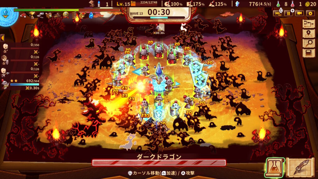 生産フェーズが終わると生産したヒーローたちが戦います。そこがタワーディフェンス要素になっています。