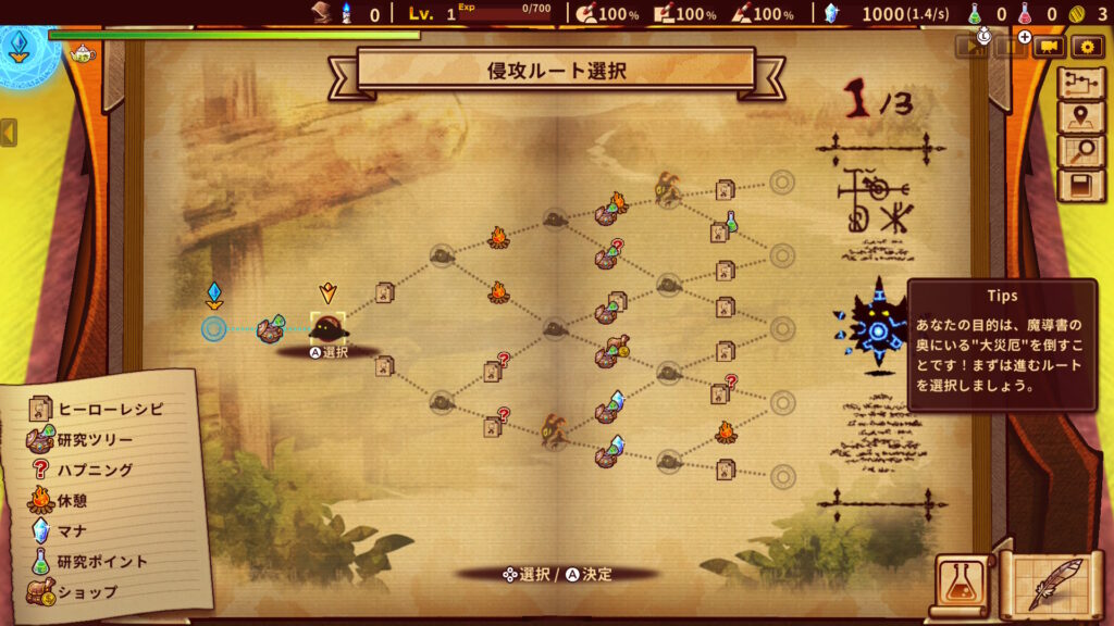 ゲームの流れとして、まずはルートを自分で選ぶので、その点もローグライトっぽいと思いました。